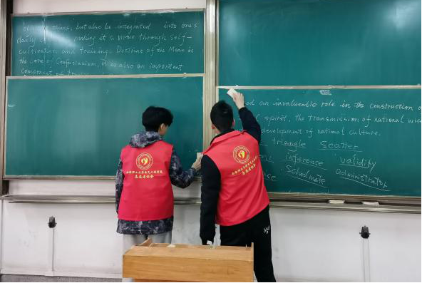 活动以“营造良好校园环境”,“打造良好运动环境”,“塑造优美教室环境”等形式开展,学习与生活部组织志愿者对曲江校区校园内公用自行车、公共区域物品进行整理摆放;班长协会组织志愿者对曲江校区足球场、篮球场、乒乓和羽毛球场进行清洁;团委办公室组织志愿者对教8楼、教10楼教室环境卫生进行整理。