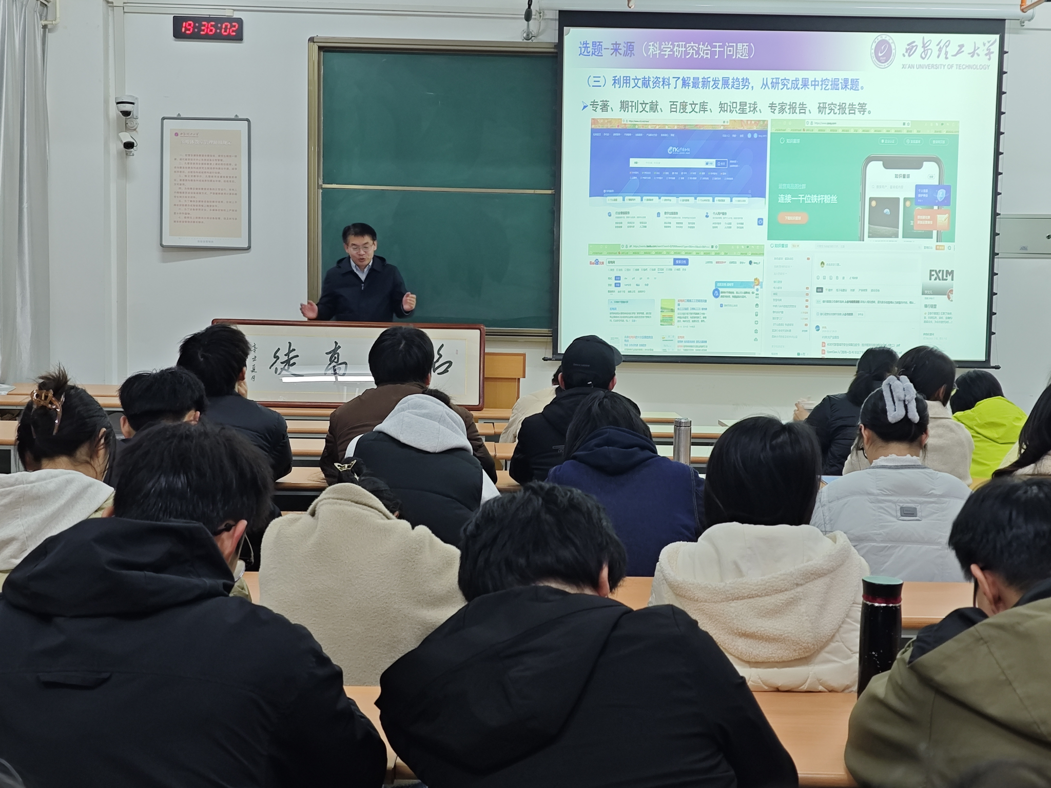 梁老师凭借广博学识与生动比喻,围绕《科研是什么——个人感悟》展开深入阐述,结合中央工作会议精神与名家言论,系统剖析创新的必要性与时代意义。随后,梁老师立足研究生科研实践,聚焦学术探索的核心选题环节,结合自身研究方向梳理出选题六大来源与五大原则,更以新能源汽车产业为例,具象展示政策文件对社会需求的引导作用,尽显对现实问题的长期深耕与思考。最后,梁老师现场分享独到治学观点,特别指出“学科虽是人为划分,科学问题却客观存在,并不囿于学科界限”,话语直击科研核心,引发在场同学深深深思。